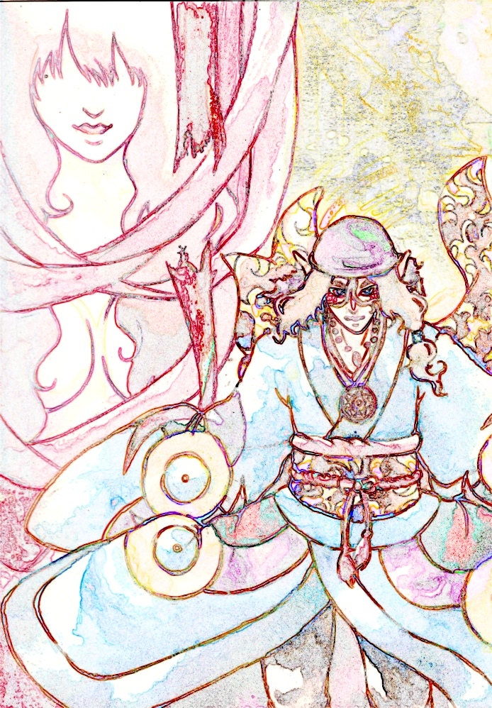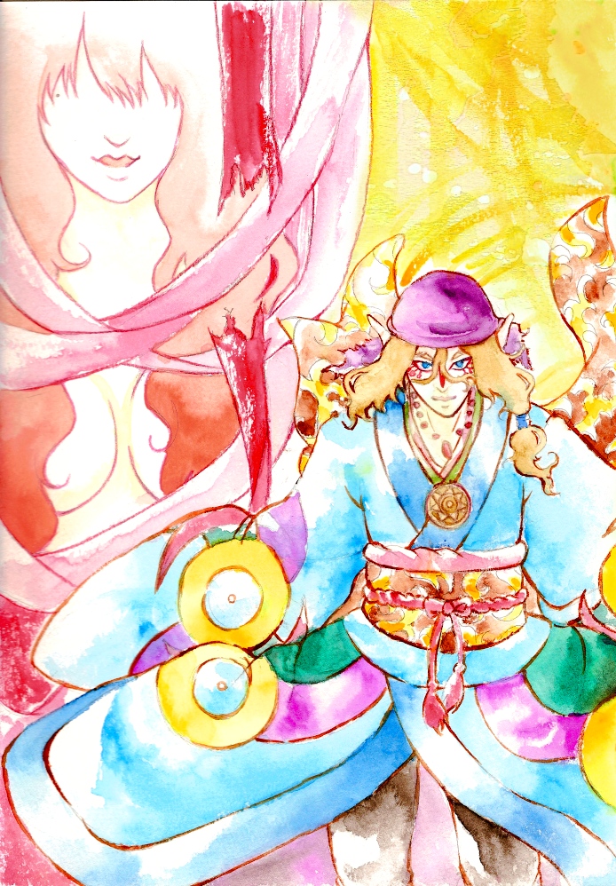 作業用BGMにモノノ怪DVDいっぱい観てたら無性に水彩で薬売りさん描きたくなって学校の教材の水彩絵の具を勝手に使用☆